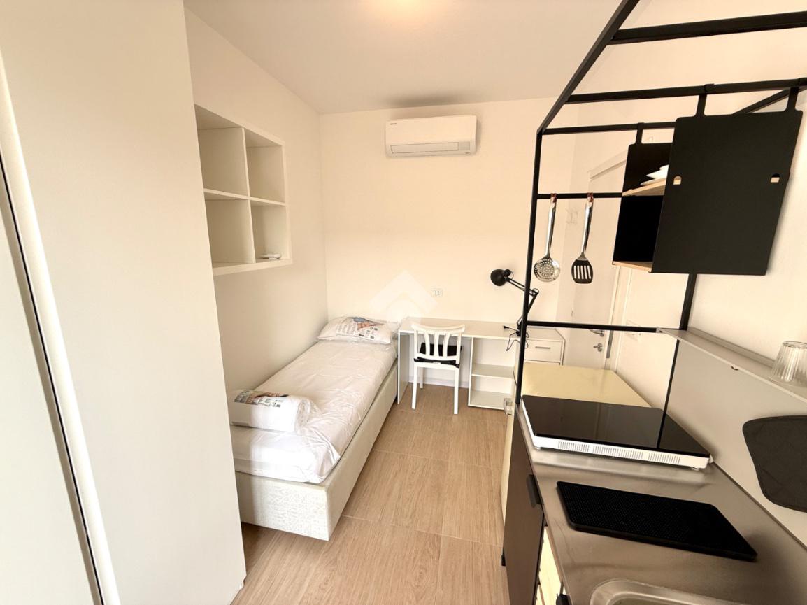 L’appartamento è stato completamente ristrutturato ed è arredato in stile moderno, molto curato e accogliente. Entrambe le camere sono completamente arredate: letto, armadio, scrivania e cucinino privato con piano induzione.