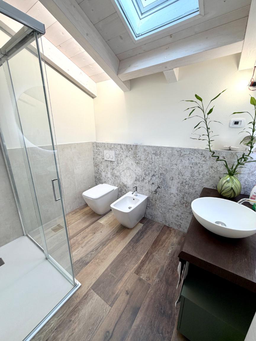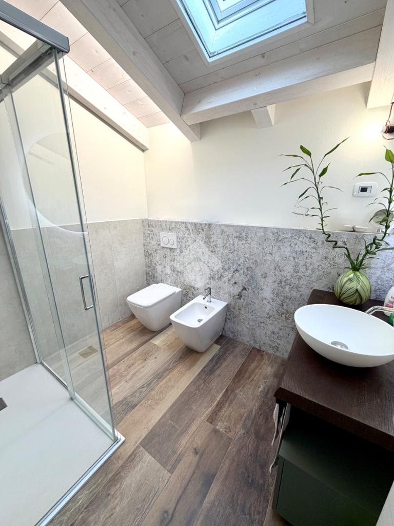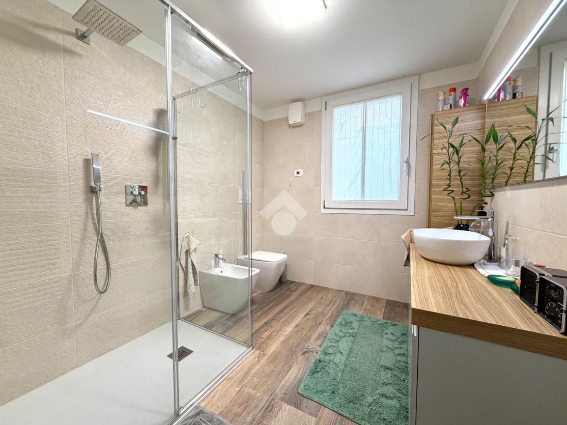 Il reparto notte è composto da una camera da letto matrimoniale, una camera singola, cabina armadio, bagno finestrato completo di box doccia e vano lavanderia separato.